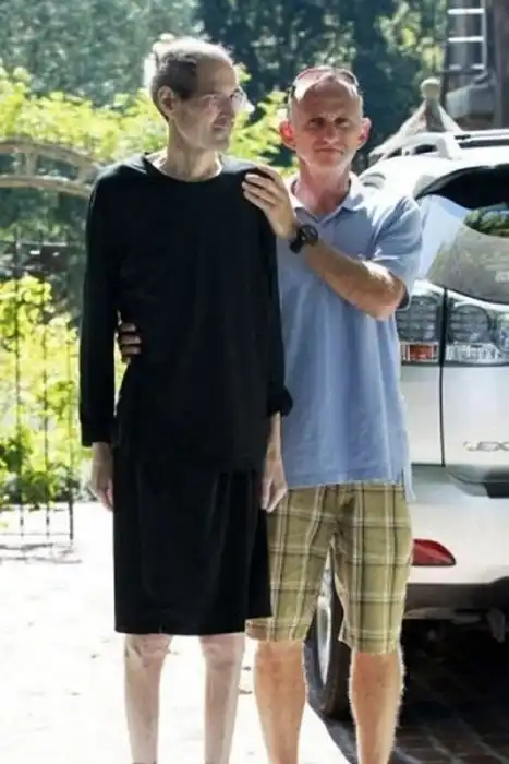 Джон Леннон даёт автограф своему убийце Марку Дэвиду Чепмену, Сам Чепмен — человек на фото, стоящий сзади.