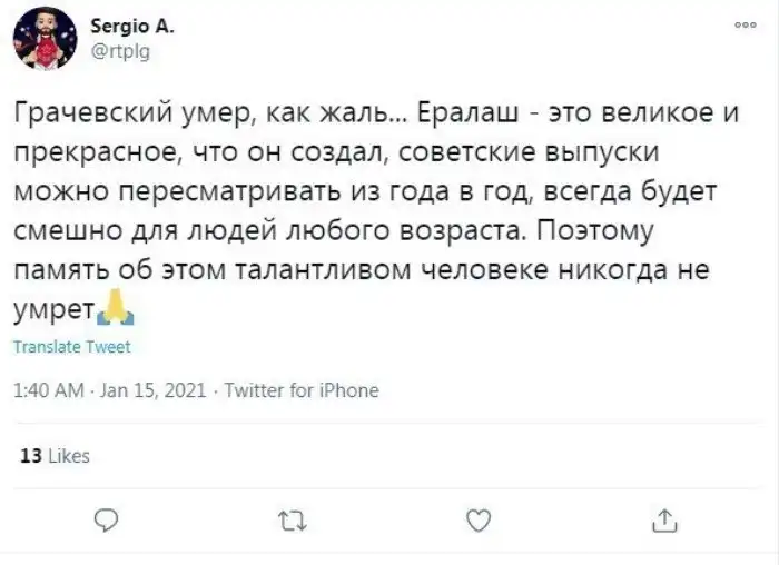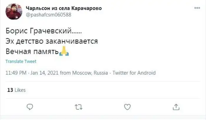 1. В сети повялются только светлые комментарии к этой ужасной новости. Люди благодарят Бориса Грачевского за счастливое детство