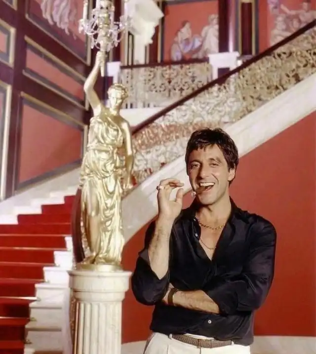 Аль Пачино во время съёмки фильма "Лицо со шрамом". 1983