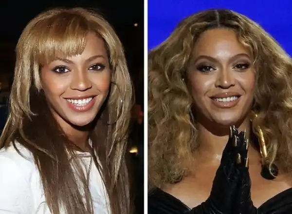 Бейонсе слева 21 год, она только что выпустила свою первую сольную песню. На фото справа — самая награждаемая женщина в истории «Грэмми»