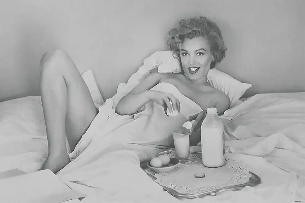 Мэрилин Монро завтракает в постели в отеле Bel Air в Лос-Анджелесе, 1953 год.