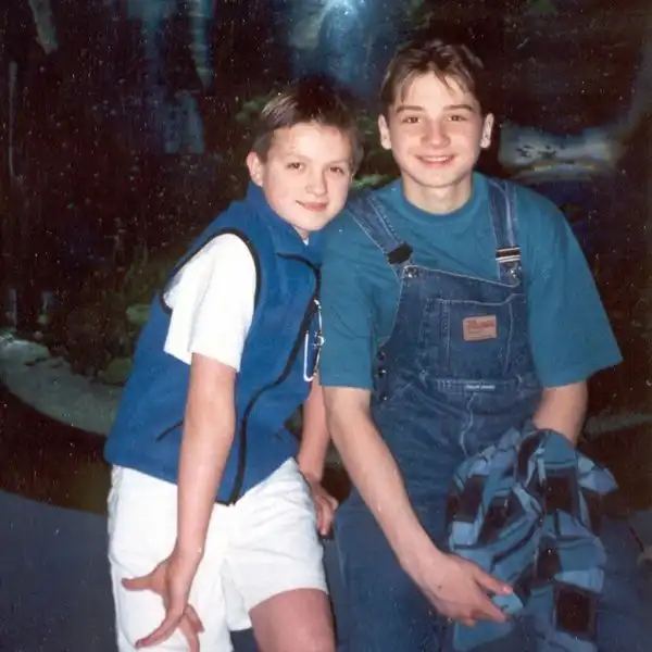 Снимок 1992 года. Деймон внизу, а Аффлек самый правый. В кадре также можно заметить Брендана Фрейзера, но настоящими друзьями с детства были именно Бен и Мэтт. Снимок сделан на съёмках фильма «Школьные узы».