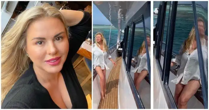 Семенович вновь разнесло, но она пытается делать вид, что очень стройная, но отражение не врет