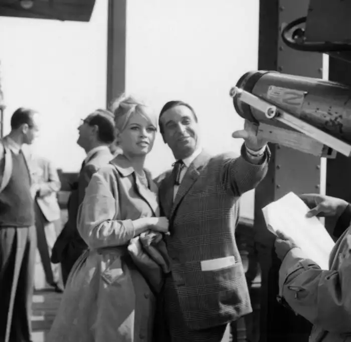 32. Брижит Бардо, режиссер Кристиан-Жак на Эйфелевой башне. 1959 г.