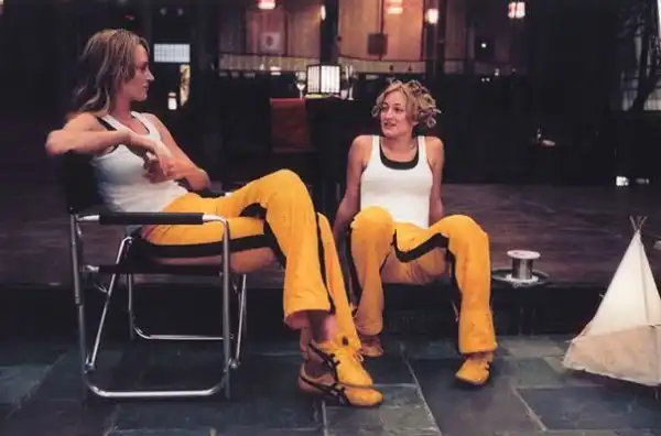 Ума Труман и каскадёр Зои Белл в перерыве между съёмками фильма «Убить Билла»