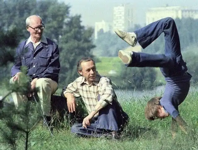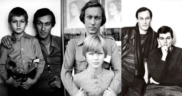 Олег Ефремов с отцом Николаем Ивановичем и сыном Михаилом, 1977 год