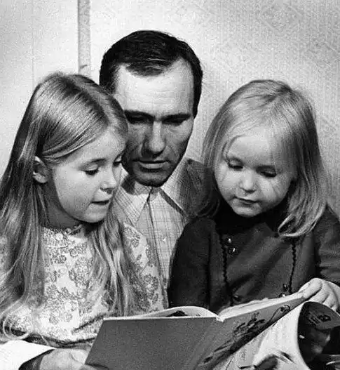 Василий Шукшин с дочерьми Марией и Ольгой, 1972 год