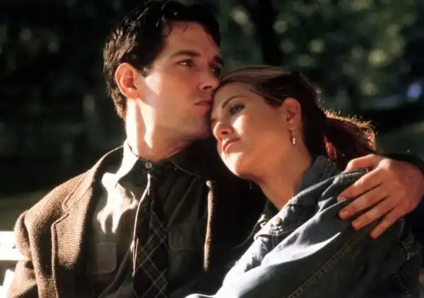 Пол Радд и Дженнифер Энистон на съемках фильма «Объект моего восхищения» в 1998 году