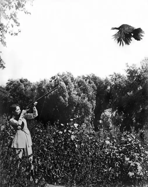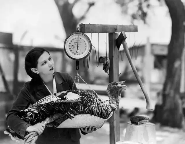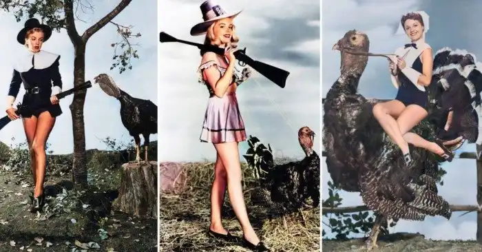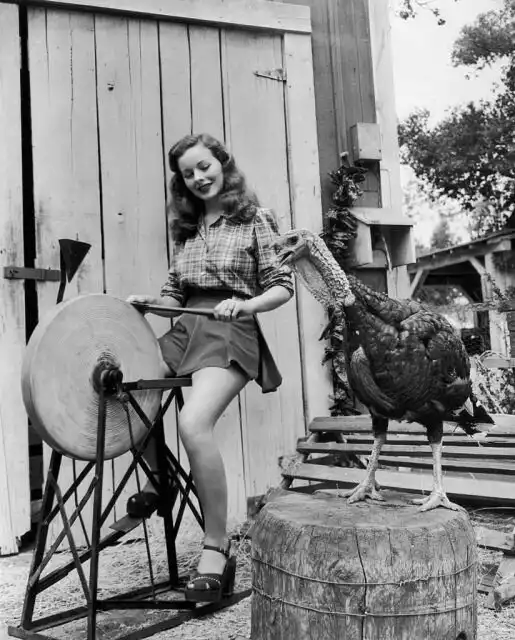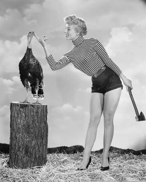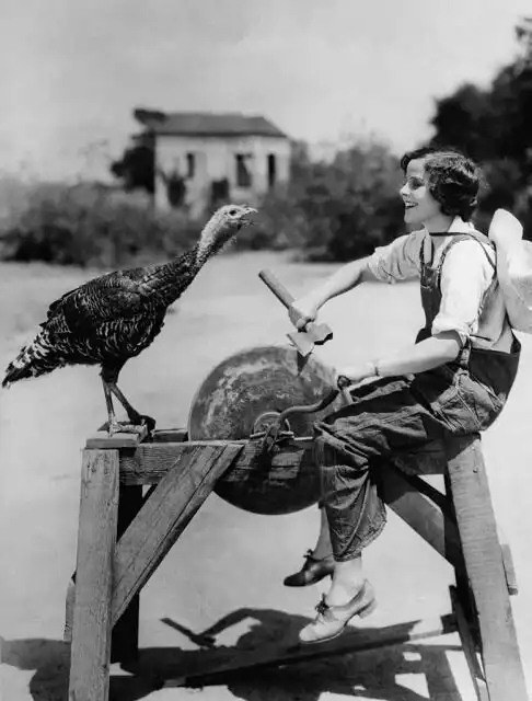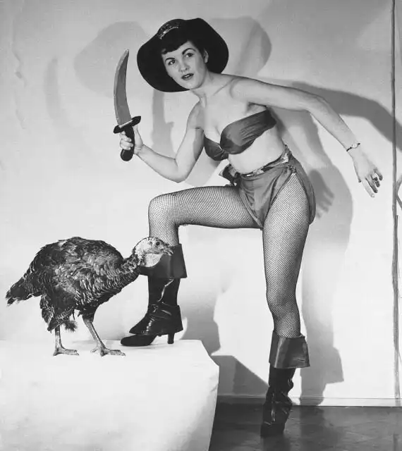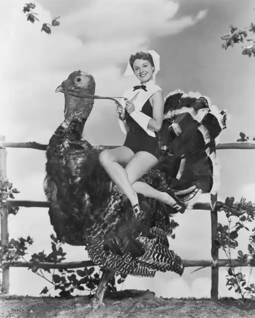 Вирджиния Гибсон верхом на индюке, 1952
