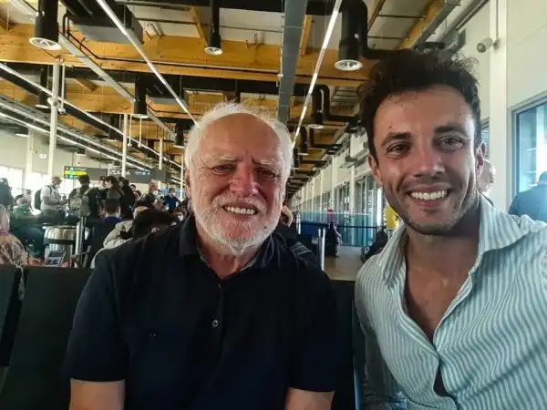 Герой мемов Андраш Арато, известный как «Гарольд, скрывающий боль», вероятно, очень «рад» очередному фанату, который захотел с ним сфоткаться