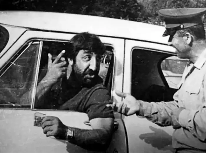 28. Великий артист нашего кинематографа Фрунзик Мкртчян в 70-е гг. 20 века на личном автомобиле "Волга" ГАЗ-21 и в прекрасном настроении