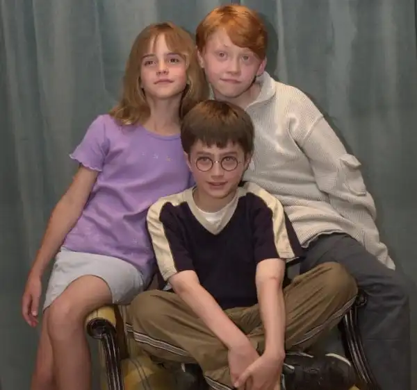 Будущие суперзвезды Дэниел Рэдклифф, Эмма Уотсон и Руперт Гринт на фотовстрече в Лондоне, 2000