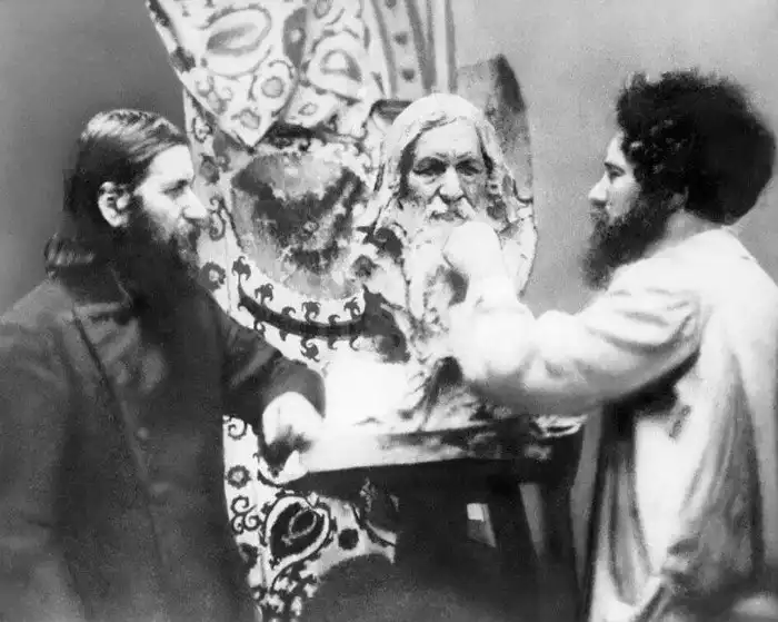 23. Скульптор Наум Аронсон за работой над бюстом Распутина. Санкт-Петербург. Российская империя. 1915 год
