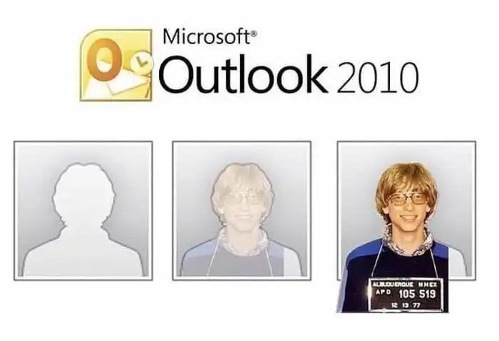 15. Силуэт в Microsoft Outlook 2010 взят с фотографии молодого Билла Гейтса