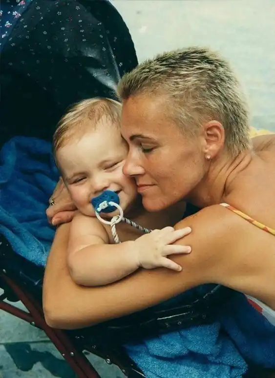 17. Вокалистка Roxette Мари Фредрикссон и её дочь Инес, 1994 год
