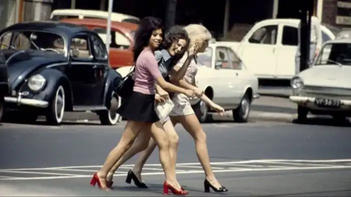 24. Девушка обсуждает с полицейскими новые веяния моды. 1979 год