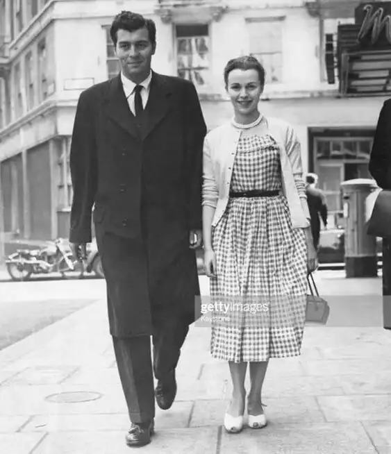 26. Сын Чарли Чаплина Сидни и Клэр Блум (исполнительница главной роли в фильме "Огни рампы") на прогулке в Лондоне, май 1952 года