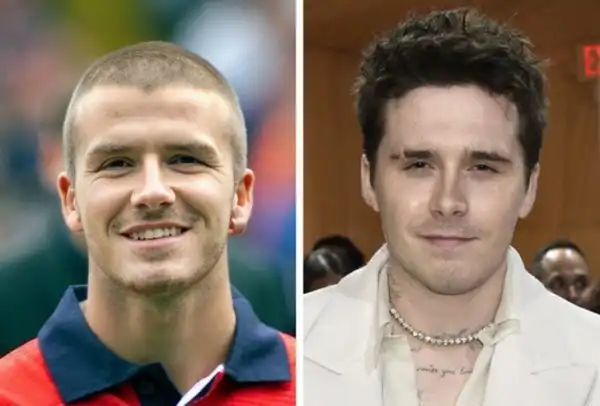 Дэвид Бекхэм в 25 лет и его сын Бруклин Бекхэм в 23 года