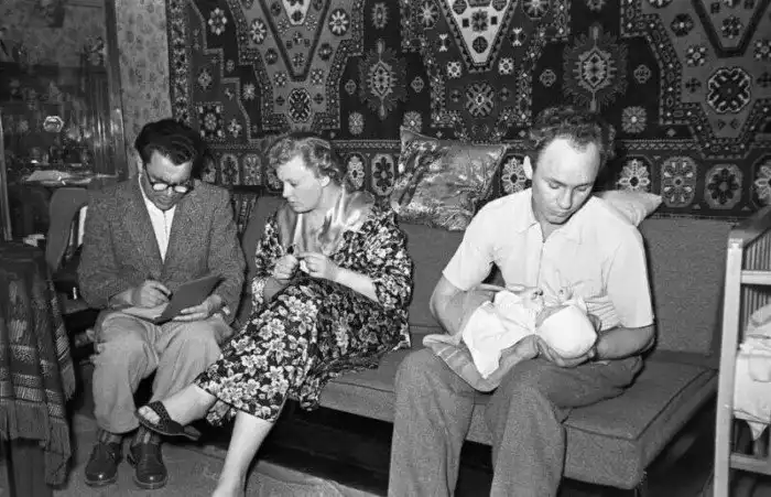 5. Николай Рыбников и Алла Ларионова с ребенком дома, 1957 год.