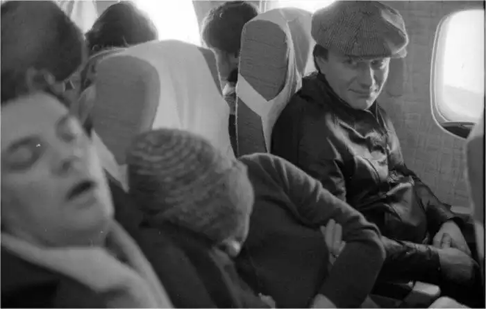 9. Андрей Миронов и Александр Ширвиндт в самолете, 1970 год.