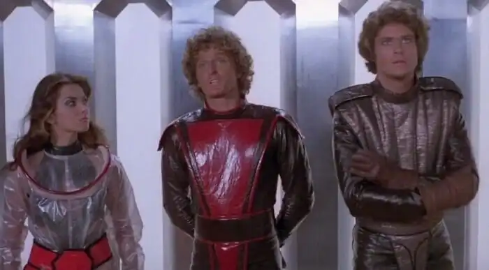 25. Дэвид Хассельхофф и Кэролайн Манро в фильме «Столкновение звёзд» (1978)