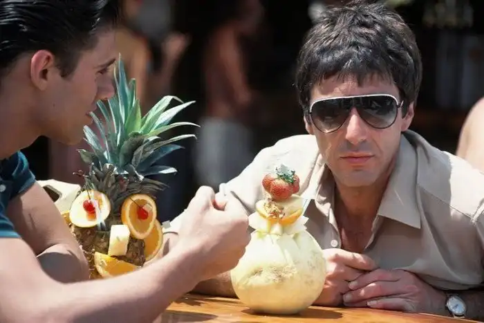 19. Аль Пачино со Стивеном Бауэром на съемках фильма «Лицо со шрамом»
