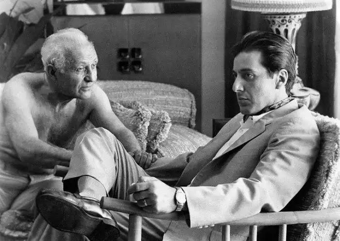 36. Аль Пачино в роли Майкла Корлеоне с Ли Страсбергом в сцене из фильма «Крестный отец 2» Фрэнсиса Форда Копполы, 1974 год