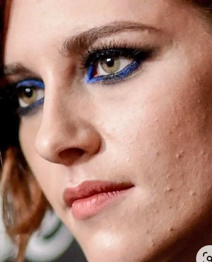 Проблемную кожу Кристен Стюарт не заметно во время съемок, но вот при детальном рассмотрении - легко увидеть акне