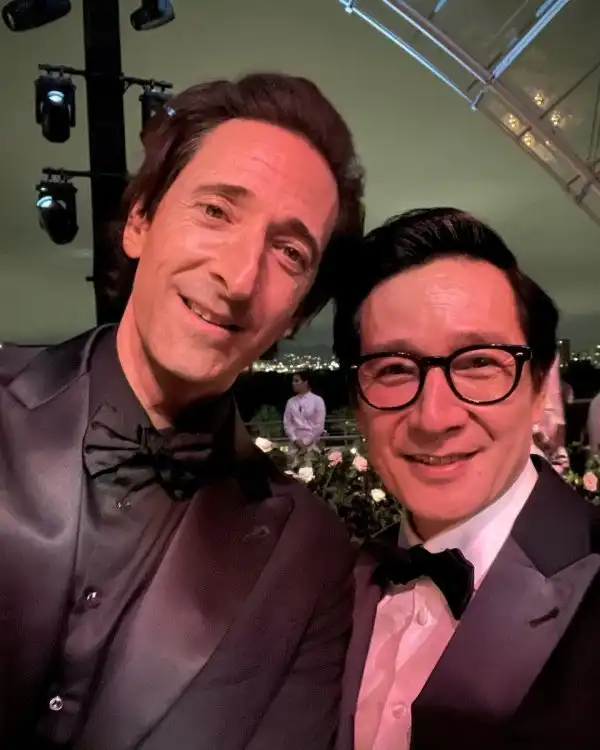 13 марта актёр вполне может получить «Оскар» за свою прорывную работу во «Всё везде и сразу», а пока он просто наслаждается возможностью видеться и фоткаться со своими знаменитыми коллегами. Наверняка, скоро мы увидим его в последующих громких проектах, и уже другие актёры и актрисы будут делать селфи с ним с таким лицом.
