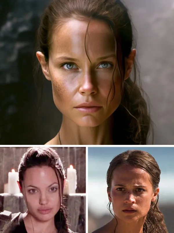 Лара Крофт (Анджелина Джоли и Алисия Викандер)