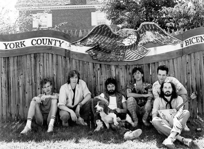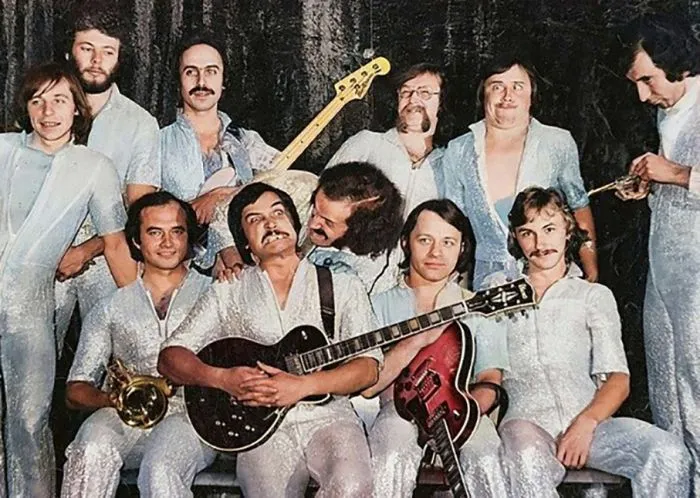 22. Группа Стаса Намина (слева направо: Александр Малинин, Александр Лосев, Стас Намин, Юрий Горьков, Александр Солич, Сергей Воронов) на гастролях в США, 1986 год
