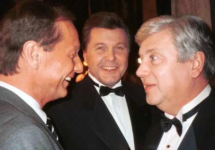 2. Михаил Задорнов, Лев Лещенко и Владимир Винокур на съемках тв-шоу "Аншлаг", Москва, 1996 год