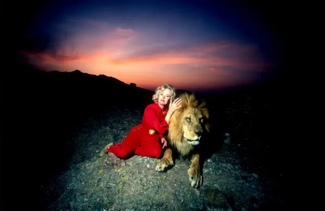 Актриса Типпи Хедрен со своим львом по кличке Нейл. Типи Хедрен - актриса и защитница прав животных. Она стала популярна благодаря фильму Альфреда Хичкока «Птицы».