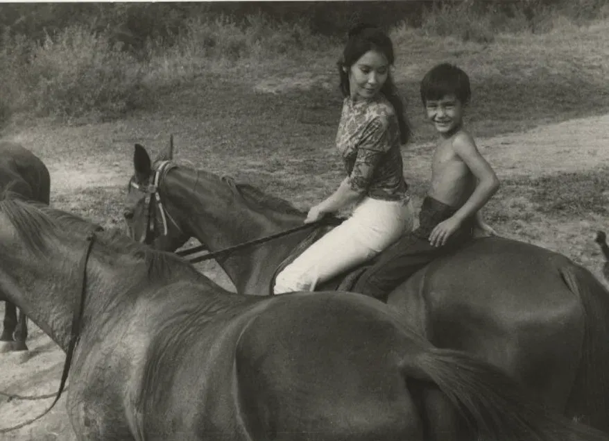 18. Наталия Аринбасарова с сыном Егором на съемках фильма, 1970-е годы