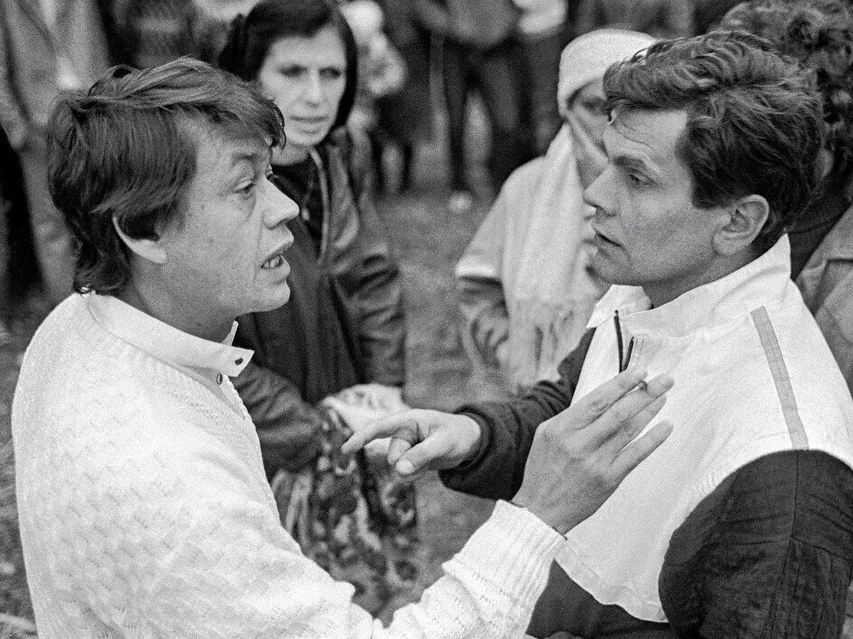 27. Николай Караченцов и кинорежиссёр Юрис Подниекс на съёмках документального фильма «Мы» в Переславле-Залесском, 1987 год