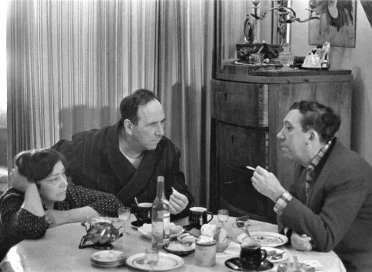 30. Юрий Никулин в гостях у Ростислава Плятта. Рядом Нина Бутова – актриса театра имени Моссовета, жена Ростислава Плятта.1962 год