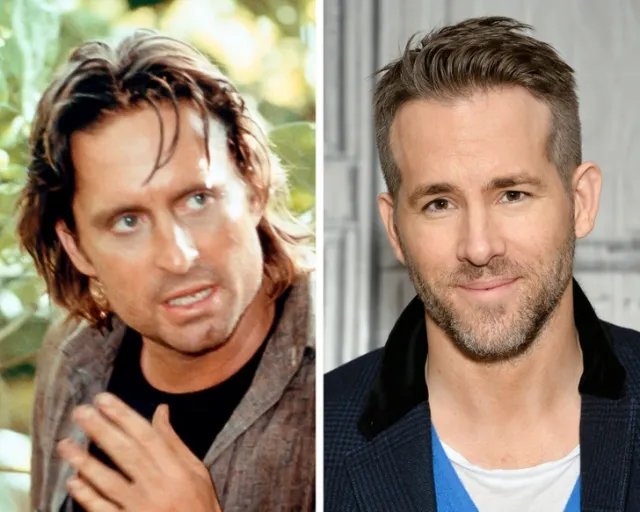 Майкл Дуглас в 1984 году и Райан Рейнольдс в 2016