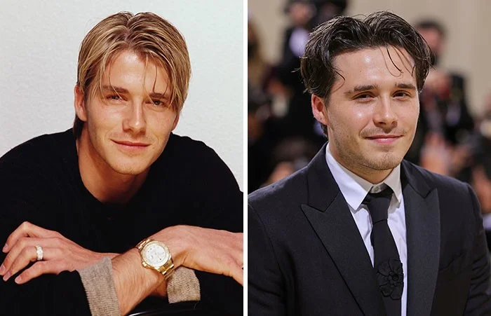 15. Дэвид Бекхэм в молодости, и его сын Бруклин Джозеф Бекхэм в 20 лет
