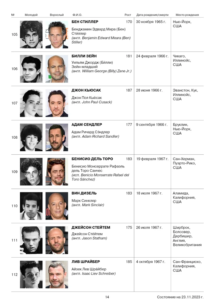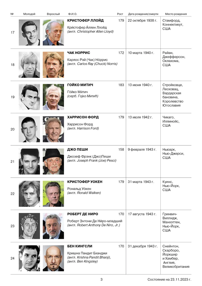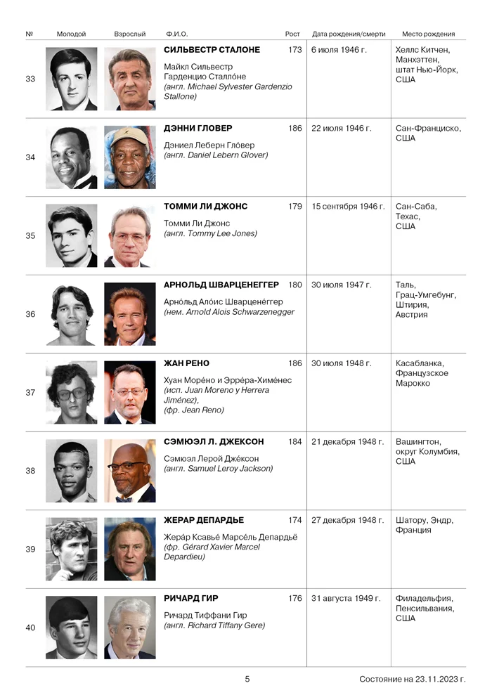 Полгода назад я разработала таблицу с информацией о иностранных актерах для своего отца, указав, кто из них старше. Кроме того, я включила данные о месте рождения, фотографии и росте. Это позволяет папе избежать ежегодных вопросов о возрасте актеров из фильма "Неудержимые" и не мучить меня дополнительными расспросами, учитывая, что у него всегда под рукой интернет. Я также планирую расширить список, добавив информацию о актрисах.