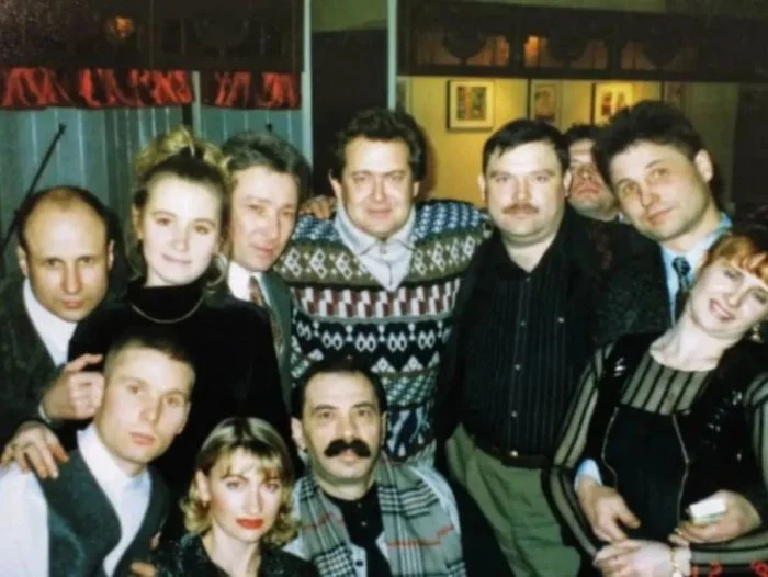 Юрий Стоянов, Илья Олейников и Михаил Круг в компании в 1990-х годах.