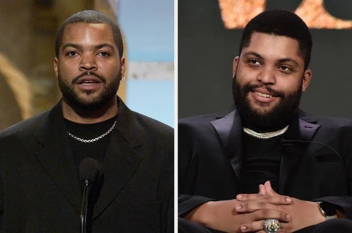 33-летний Ice Cube (О'Ши Джексон) в 2002 году и О'Ши Джексон-младший в возрасте 32 лет в 2023 году:
