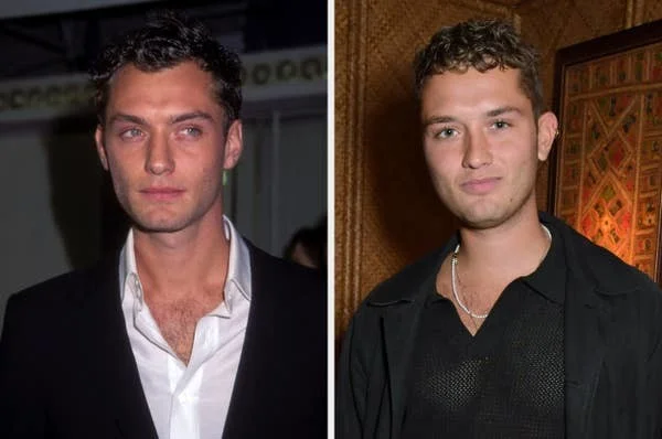 Джуд Лоу в возрасте 27 лет в 1998 году и Рафферти Лоу в возрасте 26 лет в 2022 году: