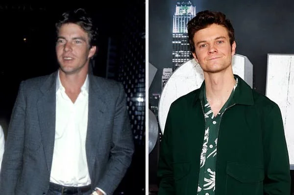 32-летний Деннис Куэйд в 1986 году и 31-летний Джек Куэйд в 2023 году: