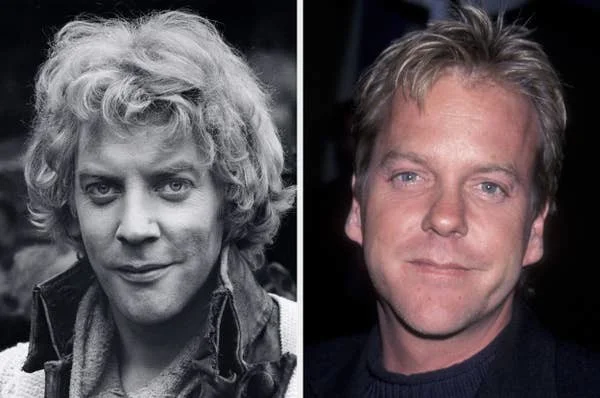 Дональд Сазерленд в 33 года в 1968 году и 35-летний Кифер Сазерленд в 2001 году: