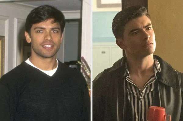 Райан Филипп в возрасте 24 лет в 1998 году и 20-летний Дикон Филипп в 2023 году:
