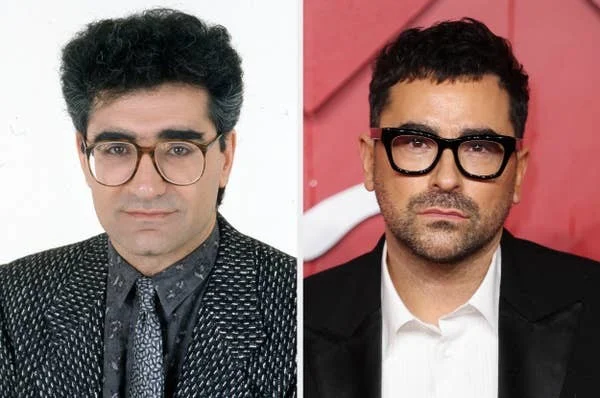Юджин Леви в возрасте 39 лет в 1985 году и Дэн Леви в возрасте 40 лет в 2023 году: