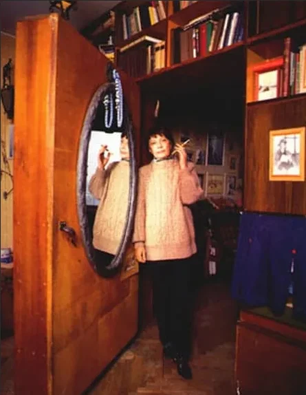 Когда они получили квартиру, меня позвали. Олег подвел меня к стеллажам, там целая стена стеллажей, а в середине зеркало. И Олег нажал на что-то возле этого зеркала, и дверь открылась. Ну, как в каком-то фильме средневековом. В стене дверь открылась и он сказал, а здесь мой кабинет. А я знала, что у него мечта, у него никогда не было своего угла. Он был такой счастливый, он не улыбался, но глаза просто, знаете, как искры из них...