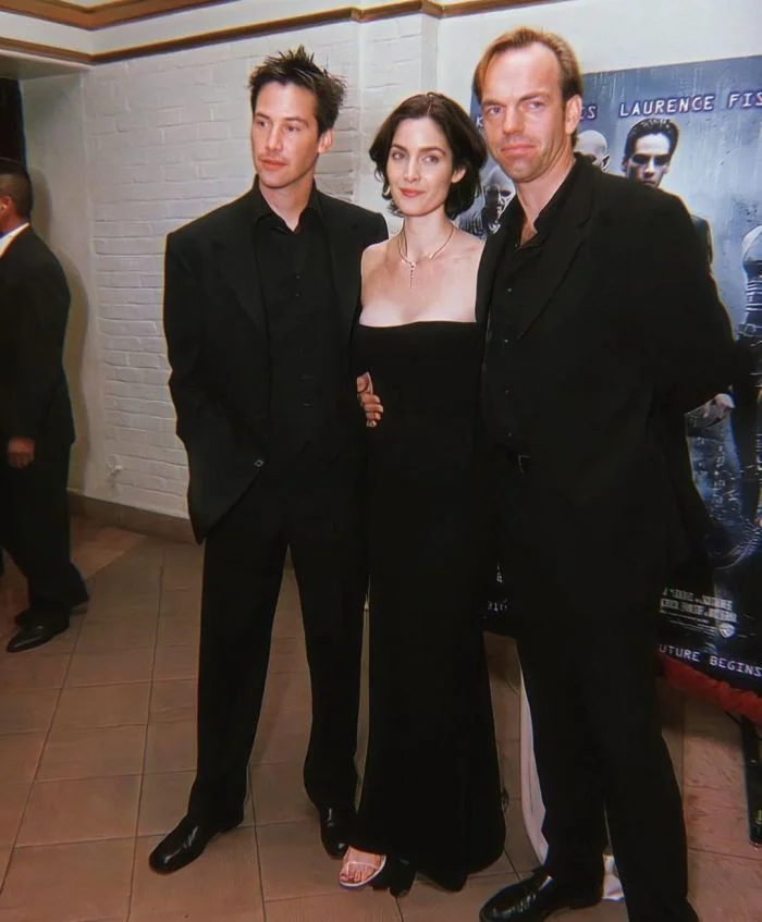 На фото Киану Ривз, Керри-Энн Мосс и Хьюго Уивинг.