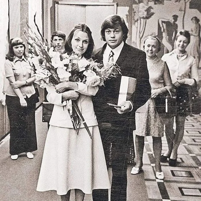 20. Людмила Пopгина и Николай Кapаченцов в Гагapинском ЗАГСе, 1975 год