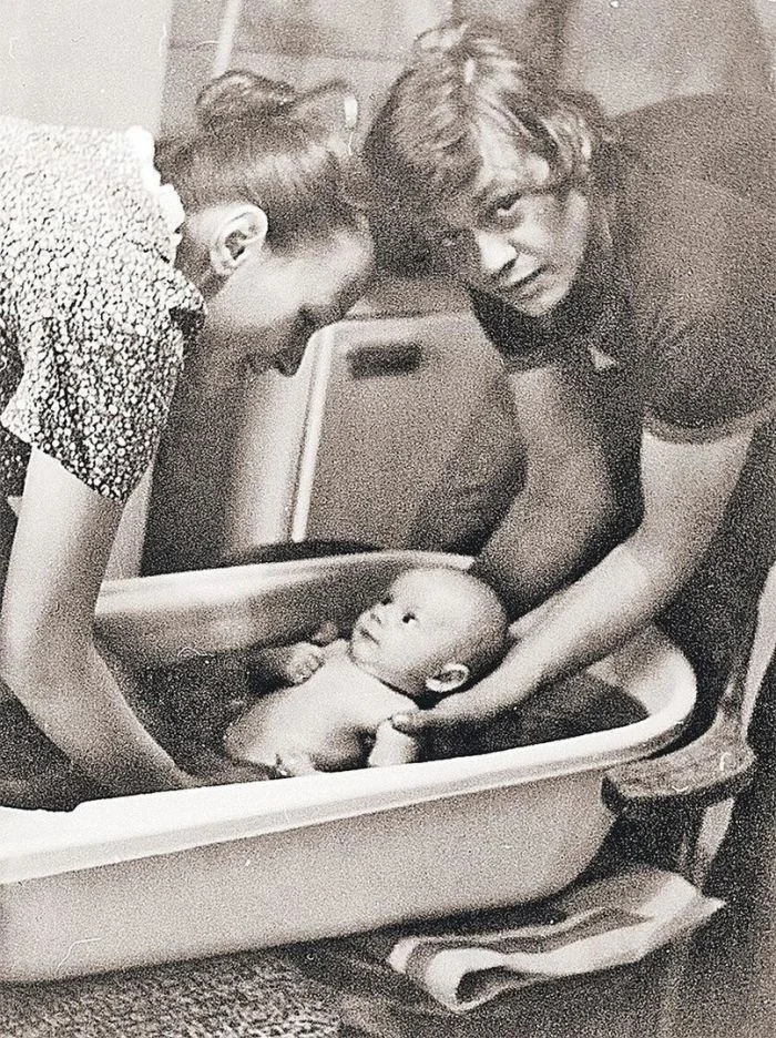 21. Николай Караченцов и Людмила Поргина заботливо купают своего 6-месячного сыночка Андрюшу. 1978 год.